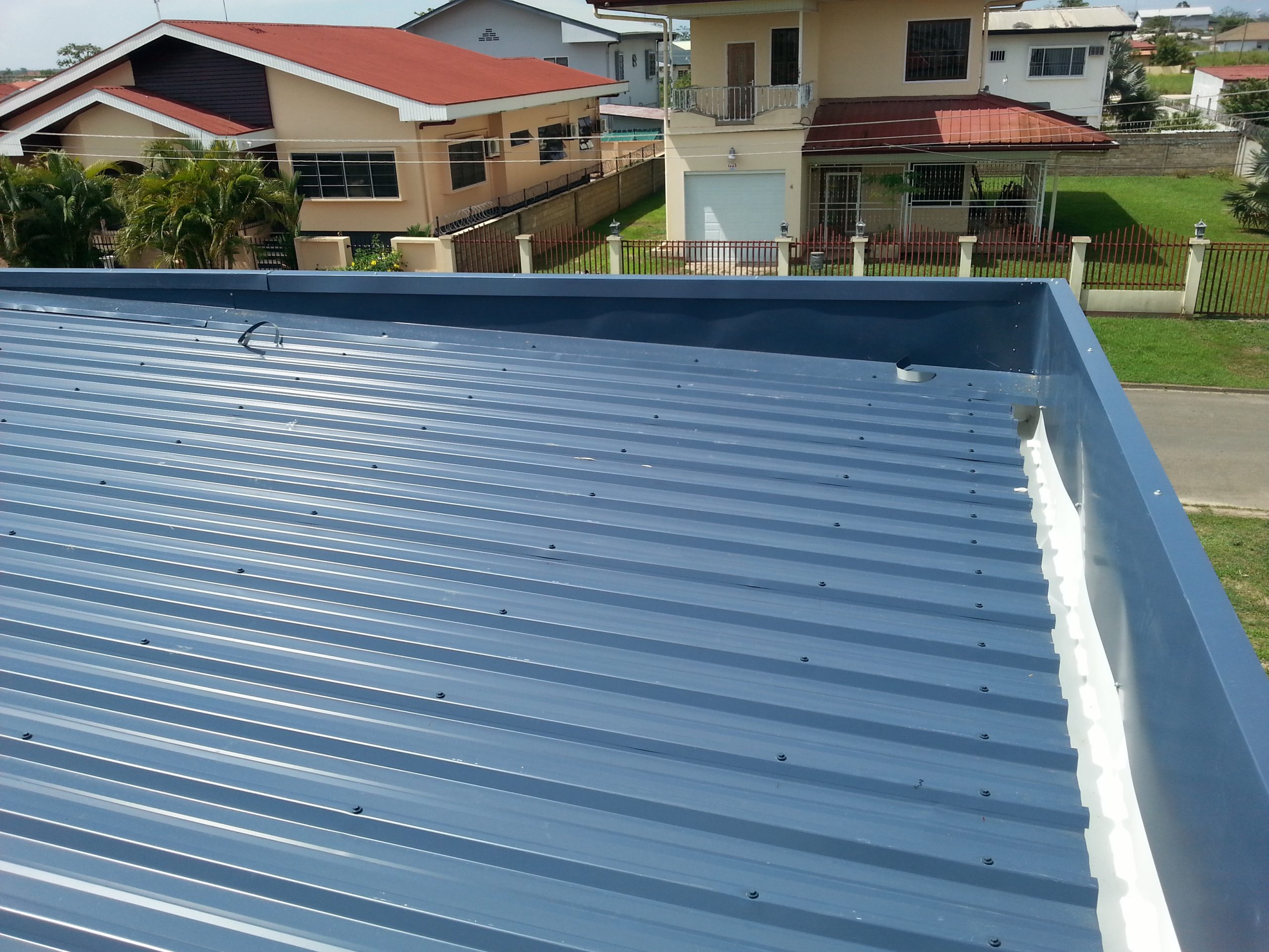 Dit is een product welke tegenwoordig heel veel gevraagd is gezien de moderne bouwstijl die tegenwoordig ook een trend is hier in Suriname. Er wordt vaak gekozen voor een zogenoemd ‘plat’ dak. Dit is een daktype waarbij de dakconstructie geheel verborgen staat achter een gevel/paneel.